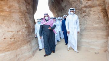 دبي، الإمارات العربية المتحدة (CNN)— تداول نشطاء على مواقع التواصل الاجتماعي صورة ولي العهد السعودي، الأمير محمد بن سلمان مبرزين الكمامة التي يرتديها خلال اجتماع قمة دول مجلس التعاون الخليجي الـ41 في منطقة العلا بالمملكة، الثلاثاء.